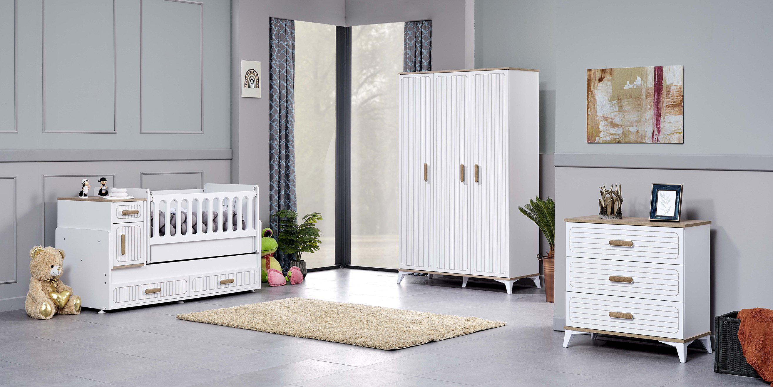 Clara'nım ferah rengi dar mekanları geniş gestermekte hünerli! Eğer bebeğiniz için geniş bir alan yaratma olanağınız yoksa Clara ile küçük mekanlarda büyük farklar yaratabilirsiniz.