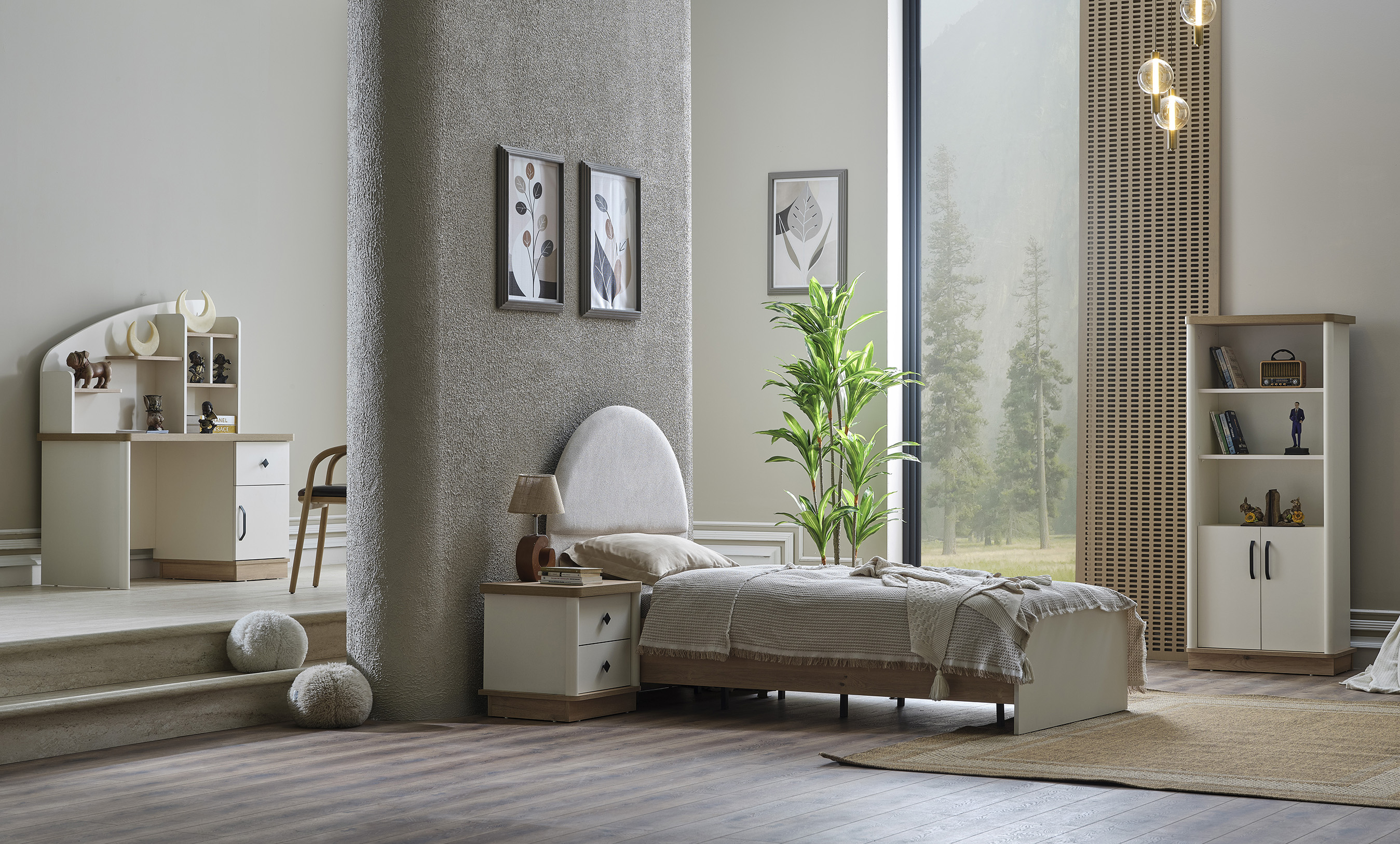 Her genç kendi alanını ister, ama kim demiş bu alanın sıradan olması gerektiğini? Viyana Genç Odası, tarzıyla fark yaratmak isteyen gençler için tasarlandı! Modern çizgileri, akıllı depolama çözümleri ve enerjik detaylarıyla hem ders çalışmak hem de dinlenmek artık çok daha keyifli.